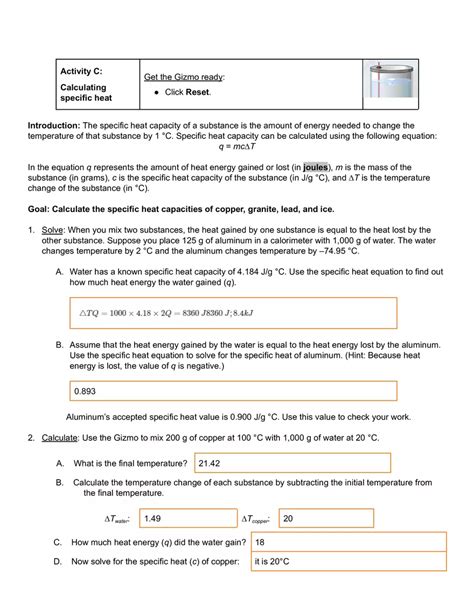 Reading Online Gizmo Answer Key Calorimetry Lab Hardcover Internet Archive